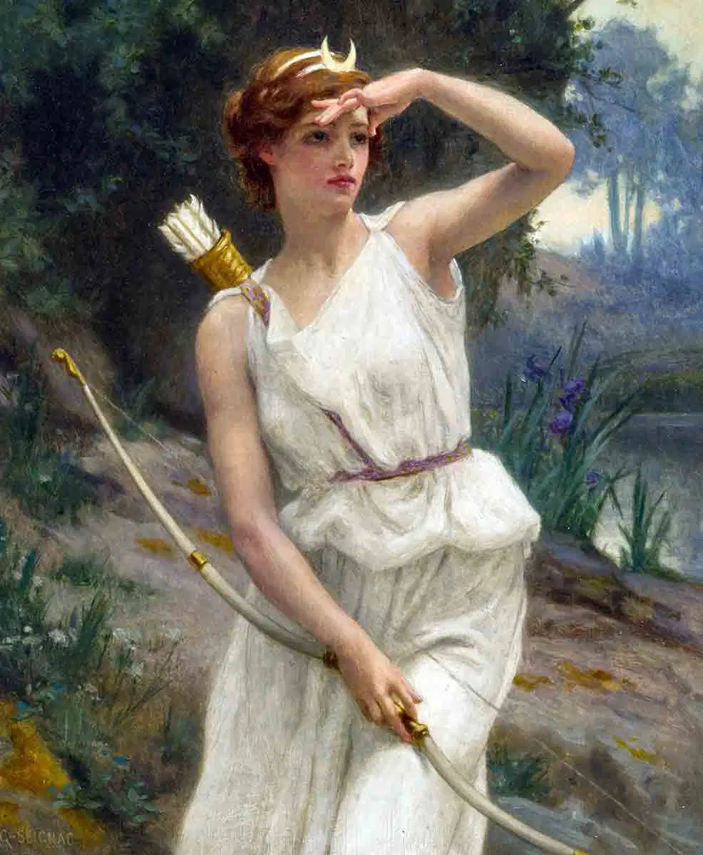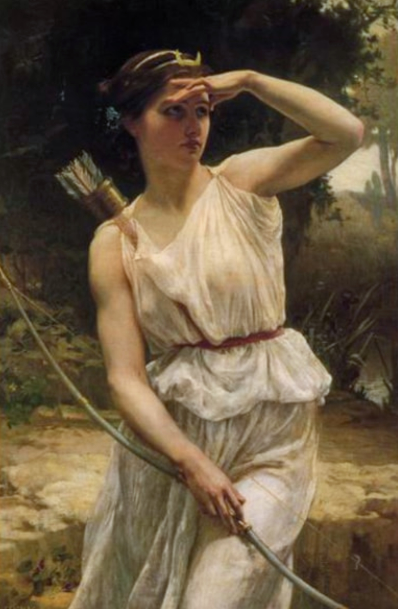 Diana is a goddess in Roman religion, primarily considered a patroness of the countryside and nature, hunters, wildlife, childbirth, crossroads, the night, and the Moon. She is equated with the Greek goddess Artemis, and absorbed much of Artemis’ mythology early in Roman history, including a birth on the island of Delos to parents Jupiter and Latona, and a twin brother, Apollo, though she had an independent origin in Italy. Diana is considered a virgin goddess and protector of childbirth. Historically, Diana made up a triad with two other Roman deities: Egeria the water nymph, her servant and assistant midwife; and Virbius, the woodland god. Diana is revered in modern neopagan religions including Roman neopaganism, Stregheria, and Wicca. In the ancient, medieval, and modern periods, Diana has been considered a triple deity, merged with a goddess of the moon (Luna/Selene) and the underworld (usually Hecate). Worship of Diana probably spread into the city of Rome beginning around 550 BCE, during her Hellenization and combination with the Greek goddess Artemis. By the 3rd century BCE, Diana is found listed among the twelve major gods of the Roman pantheon by the poet Ennius. Though the Capitoline Triad (Jupiter, Juno, and Minerva) were the primary state gods of Rome, early Roman myth did not assign a strict hierarchy to the gods the way Greek mythology did, though the Greek hierarchy would eventually be adopted by Roman religion as well.
