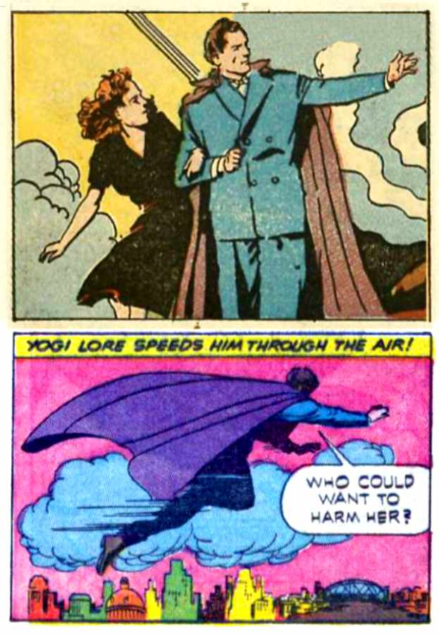 George Chance, the Ghost, knows real magic, learning it in India as the adopted son of an immortal yogi teacher. A woman named Betty helped him. His archenemy was time traveler Professor Fenton. The Ghost once traveled back in time to King Arthur’s court in order to stop the villainous Professor Fenton. While there he met Merlin, Morgan le Fay, Sir Kay, and King Arthur himself.