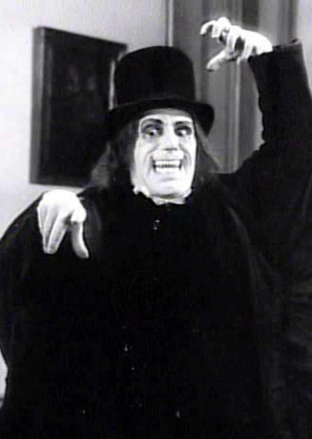 A vampiric figure of a man in a beaver-felt top hat with long hair and sharp teeth haunts an abandoned house. In actuality, the strange figure is Inspector Edward C. Burke in make-up, bent on revealing the murderer of the abandoned house’s owner from 5-years prior.