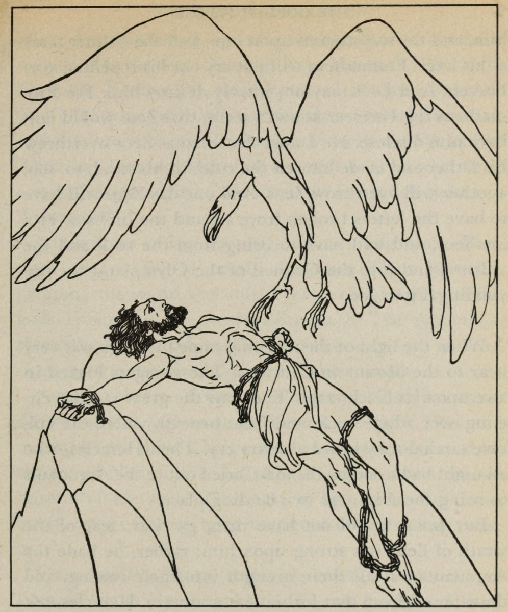 | Appearance List Literature: Hesiod’s Theogony (c. 8th–7th centuries BCE), Hesiod’s Works and Days (7th century BCE), Titanomachy (c. 7th century BCE, lost epic), Prometheus Bound (c. 5th century BCE), Plato’s Protagoras. Some two dozen other Greek and Roman authors retold and further embellished the Prometheus myth from as early as the 5th century BC (Diodorus, Herodorus) into the 4th century AD. Goethe’s “Prometheus” (1789), Percy Bysshe Shelley’s four-act lyrical drama Prometheus Unbound (1820), Lord Byron’s poem “Prometheus”. A Book of Myths (1915) by Jeanie Lang. |