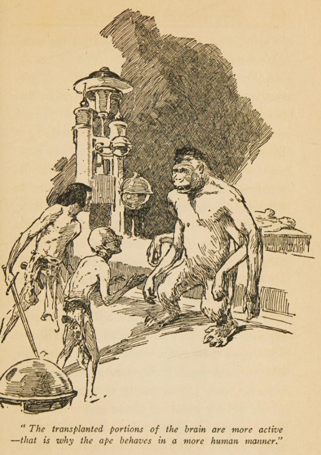Ras Thavas first appears in Edgar Rice Burroughs’ 1927 novel The Master Mind of Mars. Within the narrative framework of the story he is an elderly Martian mad scientist of the city-state of Toonol, the “Master Mind” of the novel’s title, skilled in the surgical transplantation of brains. He takes in protagonist Ulysses Paxton, an earthman newly arrived on the planet, and educates him in the ways of Barsoom, as Mars is known to its inhabitants. Ras has perfected techniques of brain transplantation, which he uses to provide rich elderly Martians with youthful new bodies for a profit. Distrustful of his fellow Martians, he trains Paxton as his assistant to perform the same operation on him. But Paxton has fallen in love with Valla Dia, one of Ras’ young victims, whose body has been swapped for that of the hag Xaxa, Jeddara (empress) of the city-state of Phundahl. He refuses to operate on Ras until his mentor promises to restore her to her rightful body. Ras agrees, and receives his operation. Now distrustful of his protege, the scientist plots to murder him, but Paxton escapes in the company of other experimental victims of the master mind and proceeds to Phundahl on his quest to retrieve Valla Dia’s original body. Ras warns Xaxa against Paxton, but the group ultimately succeeds in kidnapping the Jeddara and reversing the brain exchange. Later Ras travels to Phundahl for aid in recovering his island laboratory, from which he has been expelled by soldiers from Toonol. He finds Xaxa overthrown and Paxton’s ally Dar Tarus the new Jeddak. Tarus agrees to oust the Toonolians on the condition that Ras reform and cease trafficking in bodies. Ras later resurfaces in the later novel Synthetic Men of Mars (1939), by which time he has transferred his base to the dead city of Morbus in the Toonolian Marshes. There he has been experimenting in growing monstrous synthetic human beings called hormads. The most intelligent of these turn on him and force him to grow an army of hormads with which to conquer Barsoom. They also force their captive to transplant their brains into the bodies of imprisoned normal Martians. Ras’ chance to turn the tables comes when the earthman John Carter, Warlord of Mars and prince of Helium, seeks his surgical aid for his wife Dejah Thoris, injured in an accident. Imprisoned with Ras, Carter and his companion Vor Daj plot with him against the hormads. Vor Daj is given the body of a hormad to spy on their captors; meanwhile, Carter and Ras escape, returning with a great fleet of airships from Helium. Vor Daj is recovered and Morbus, which has been overrun by a huge mass of cancerously growing hormad flesh, is destroyed with incendiary bombs. Ras then restores Vor Daj to his original body. One hormad, Ras’s pupil Pew Mogel, is later revealed in “John Carter and the Giant of Mars” (1940) to have escaped from Morbus and established a new base in the dead city of Korvas, from which he continues to plot world conquest using the scientific skills he gleaned from his mentor. His scheme is defeated by John Carter.