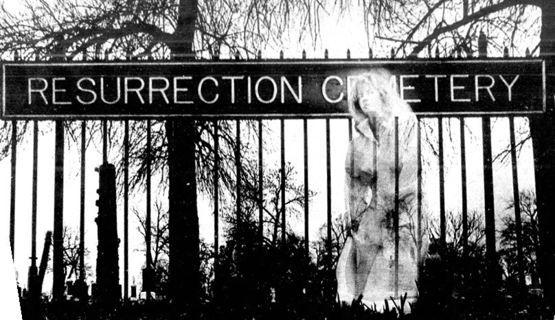 Resurrection Mary is a well-known Chicago area ghost story, or urban legend, of the “vanishing hitchhiker” type, a type of folklore that is known in many cultures. According to the story, the ghost resides in Resurrection Cemetery in Justice, Illinois, a few miles southwest of Chicago. Resurrection Mary is considered to be Chicago’s most famous ghost. Since the 1930s, several men driving northeast along Archer Avenue between the Willowbrook Ballroom and Resurrection Cemetery have reported picking up a young female hitchhiker. This young woman is dressed somewhat formally in a white party dress and is said to have light blond hair and blue eyes. There are other reports that she wears a thin shawl, dancing shoes, carries a small clutch purse, and possibly that she is very quiet. As the driver nears Resurrection Cemetery, she disappears into it. According to the Chicago Tribune, “full-time ghost hunter” Richard Crowe has collected “three dozen … substantiated” reports of Mary from the 1930s to the present. The story goes that Mary had spent the evening dancing with a boyfriend at the Oh Henry Ballroom. At some point, they got into an argument and Mary stormed out. She left the ballroom and started walking up Archer Avenue. She had not gotten very far when she was struck and killed by a hit-and-run driver, who fled the scene leaving Mary to die. Her parents found her and were grief-stricken at the sight of her dead body. They buried her in Resurrection Cemetery, wearing a beautiful white dancing dress and matching dancing shoes. The hit-and-run driver was never found.