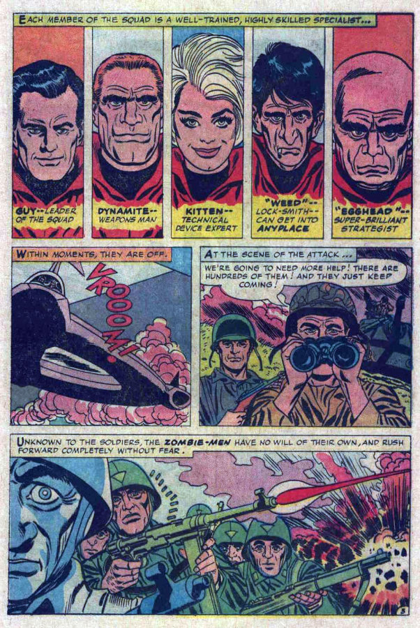 | Real Names/Alt Names Virgil “Guy” Gilbert, Dynamite (Daniel John Adkins), William “Weed” Wylie, Kathryn “Kitten” Kane, and James “Egghead” Andor |